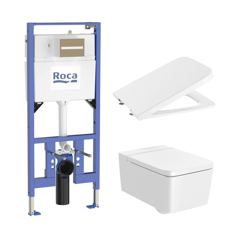 Допълнителна информация Комплектът включва: Duplo S - Структура за вграждане с казанче с двойно отмиване за окачена тоалетна чиния A8900A902E SQUARE - Окачена тоалетна чиния, Rimless A346537000 • Размери (дължина, широчина, височина): 370 x 560 x 440 mm • Roca Rimless® • Вид монтаж: За стенен монтаж • Вид оттичане: Хоризонтално • Вид ринг: Rimless • Крепежни елементи: Включени • Начин на отмиване: Стандартен тип отмиване • Форма: Правоъгълна SQUARE - Седалка и капак SUPRALIT® за тоалетна чиния, със забавено падане A80153200B • Размери (дължина, широчина, височина): 442 x 372 x 38 mm • Широчина на тоалетната чиния (mm): 370 • Разстояние между дупките за инсталация и предна част: 426 mm • EasyFix • Разстояние между дупките за инсталация: 160 mm • Supralit® • Материал на пантите: Хромиран месинг • Подходящо за: Тоалетна чиния • Форма: Правоъгълна Назад