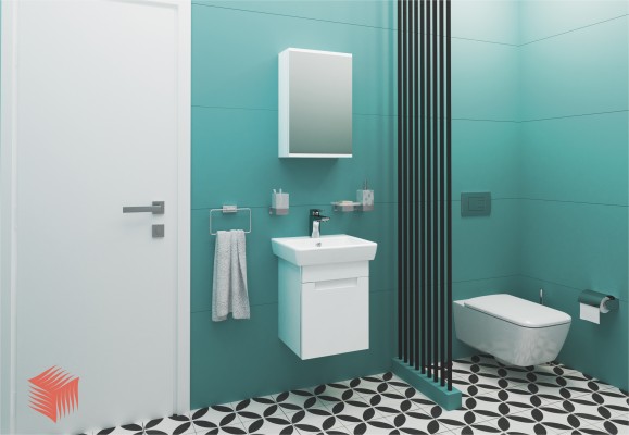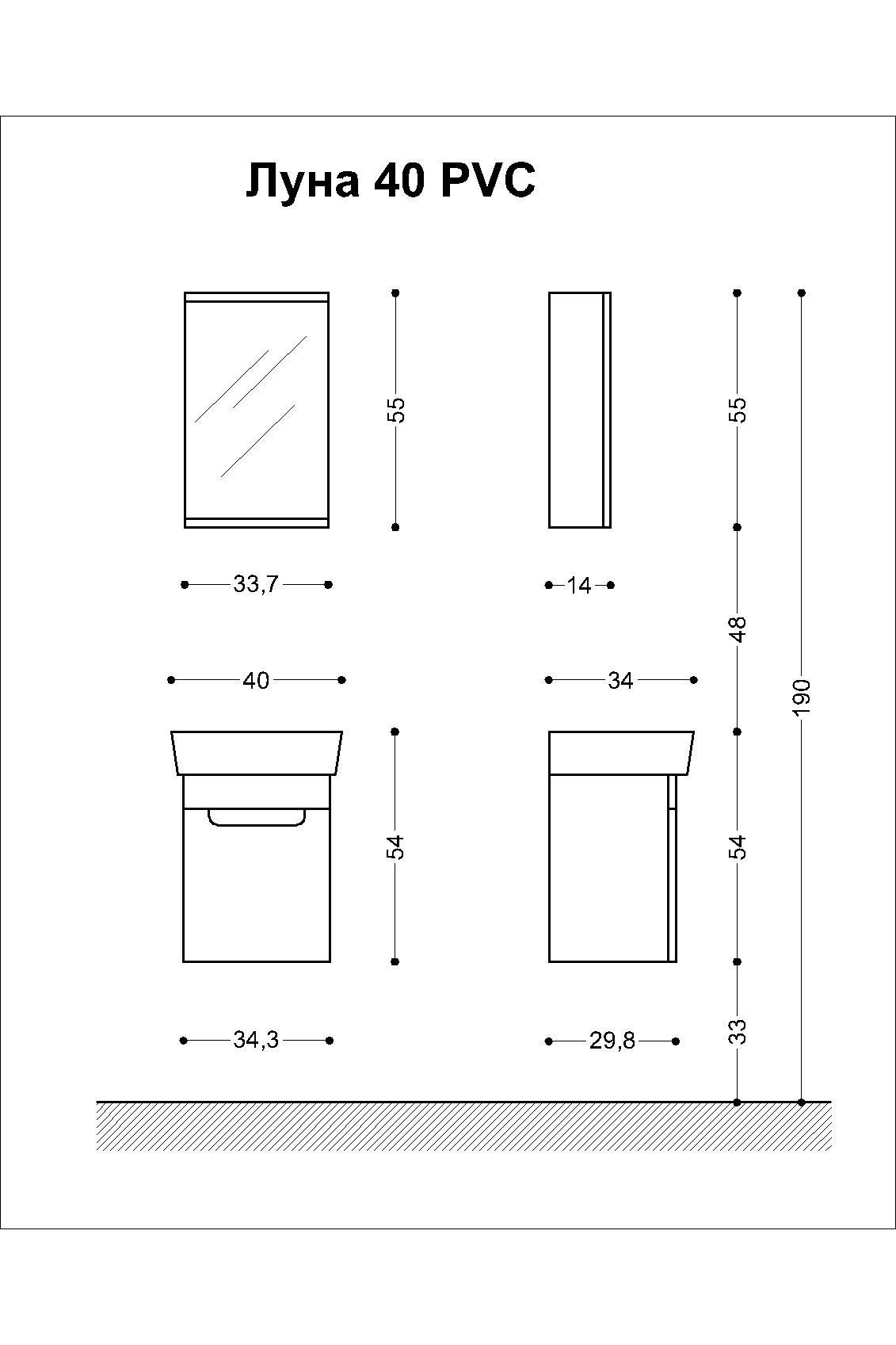 Допълнителна информация Комплект мебели за баня с бяло гланцово покритие, изработени от водоустойчиво PVC с дебелина 18 мм. Горният шкаф е с размери ш.33,7 д.14,1 в.55см, с една огледална врата, с ляво или дясно отваряне, с един подвижен рафт от PVC. Долният шкаф е окачен, с размери ш.40 д.34 в.54см, с една врата, която може да бъде с ляво или с дясно отваряне. Порцеланова мивка. В цената не е включен смесител. Посочениете цени са с включено ДДС. артикул цена цена Горен шкаф 199.00 лв. 101.75 € Долен шкаф с мивка 329.00 лв. 168.21 € Материал PVC водоустойчив Размер до 55 см. Назад