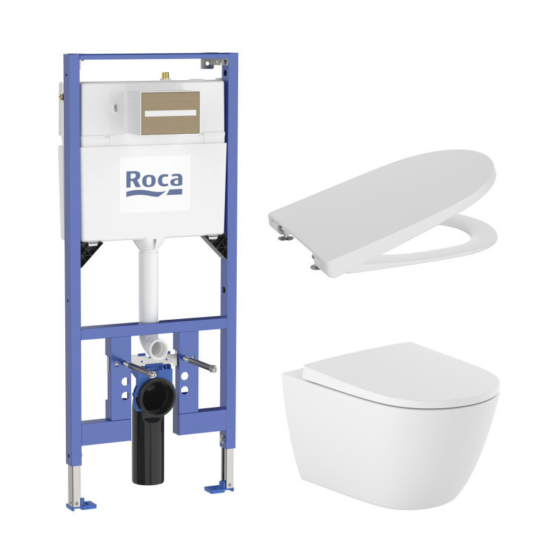 Допълнителна информация Комплекта включва: Duplo S - Структура за вграждане с казанче с двойно отмиване за окачена тоалетна чиния A8900A0020 Окачена тоалетна чиния, хоризонтално оттичане, Rimless A346687620 • Размери (дължина, широчина, височина): 360 x 530 x 290 mm • Roca Rimless® • Тегло (kg): 23 • Вид монтаж: За стенен монтаж • Вид оттичане: Хоризонтално • Начин на отмиване: Стандартен тип отмиване • Форма: Овална Седалка и капак SUPRALIT® за тоалетна чиния, със забавено падане A801E12621 • Размери (дължина, широчина, височина): 448 x 363 x 46 mm • Широчина на тоалетната чиния (mm): 360 • Разстояние между дупките за инсталация и предна част (mm): 430 • EasyFix • Разстояние между дупките за инсталация (mm): 200 • QuickRelease • Supralit® • Материал на пантите: Неръждаема стомана • Подходящо за: Тоалетна чиния Назад