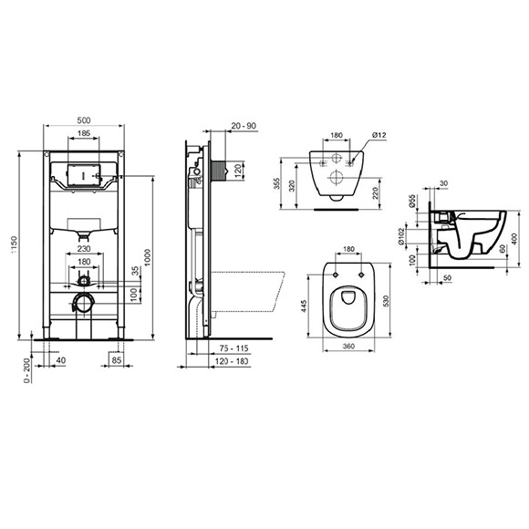 Допълнителна информация IDEAL STANDARD Tesi Rimless+ WC КОМПЛЕКТ ЗА ВГРАЖДАНЕ Код на комплекта: R059501 Комплектът се състой от: ProSys™ 120P структура за вграждане R027767 Конзолна тоалетна чиния без ринг RimLS+,със скрито присъединяване, EASYFIX+ фиксация, T558801 Ултратънка тоалетна седалка с плавно затваряне и Easy Take Off крепежи T552201 Пневматичен бутон за структура за вграждане по избор: OLEAS P1 R0116AA OLEAS P1 R0116JG OLEAS P1 R0116A6 OLEAS P2 R0119A6 OLEAS P3 R0124AA * Каталожният номер на избрания бутон се отбелязва в полето "Забележка към поръчката" Назад